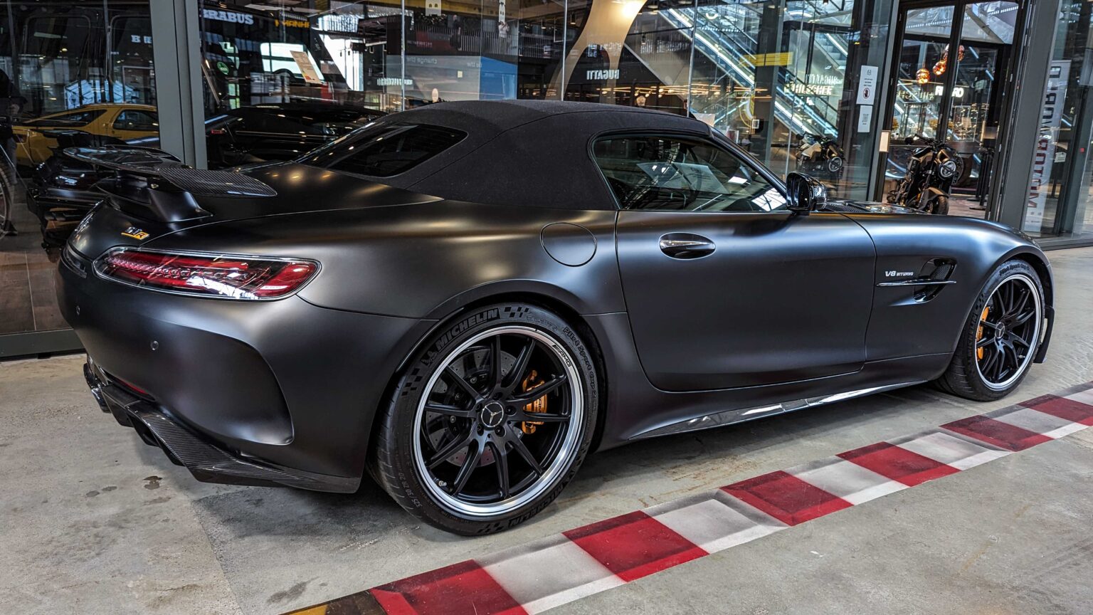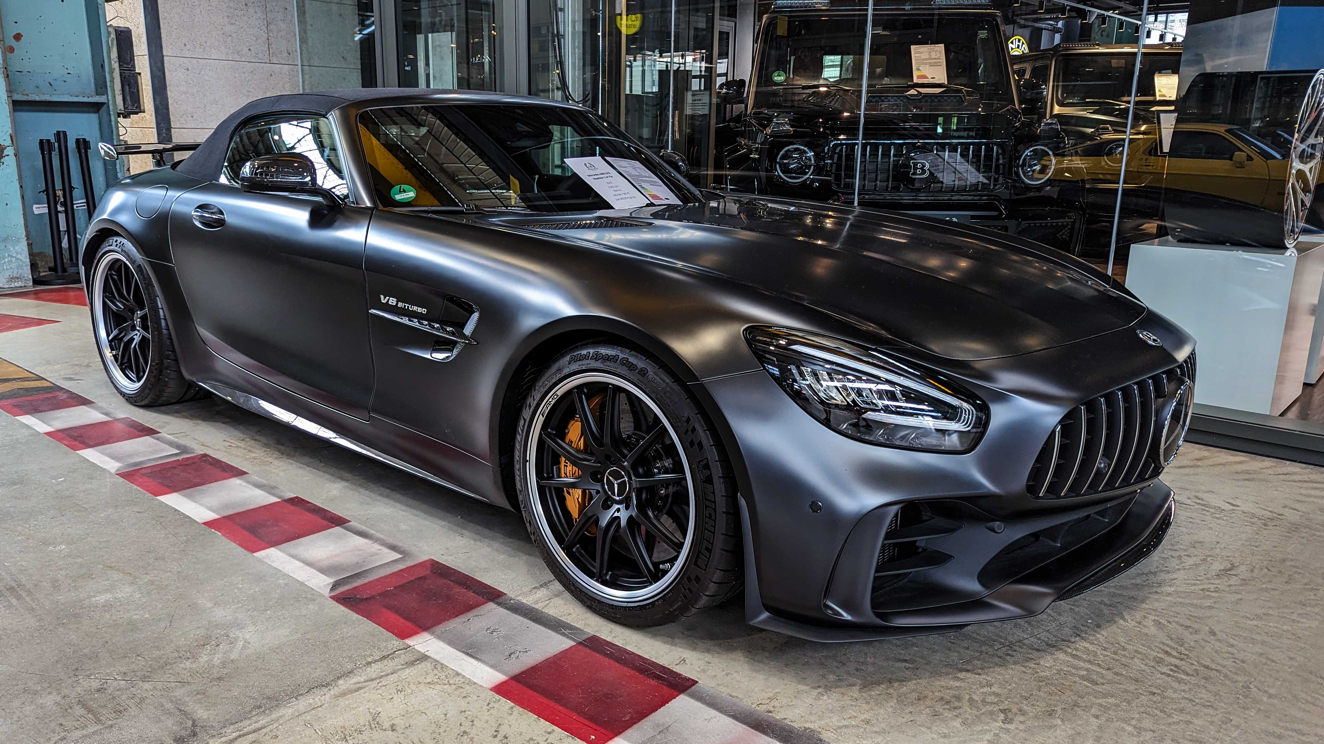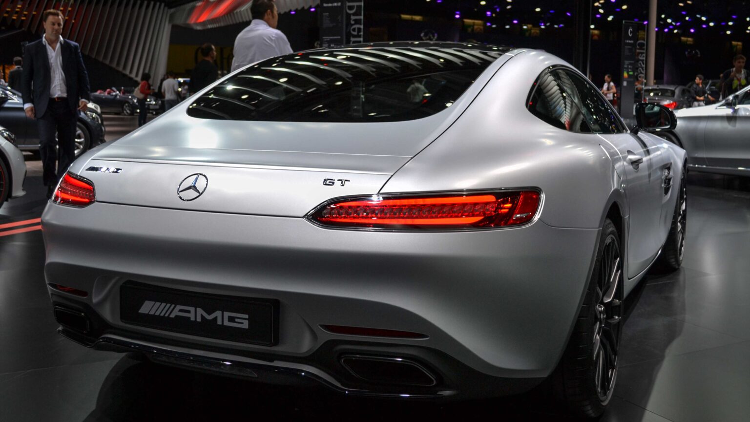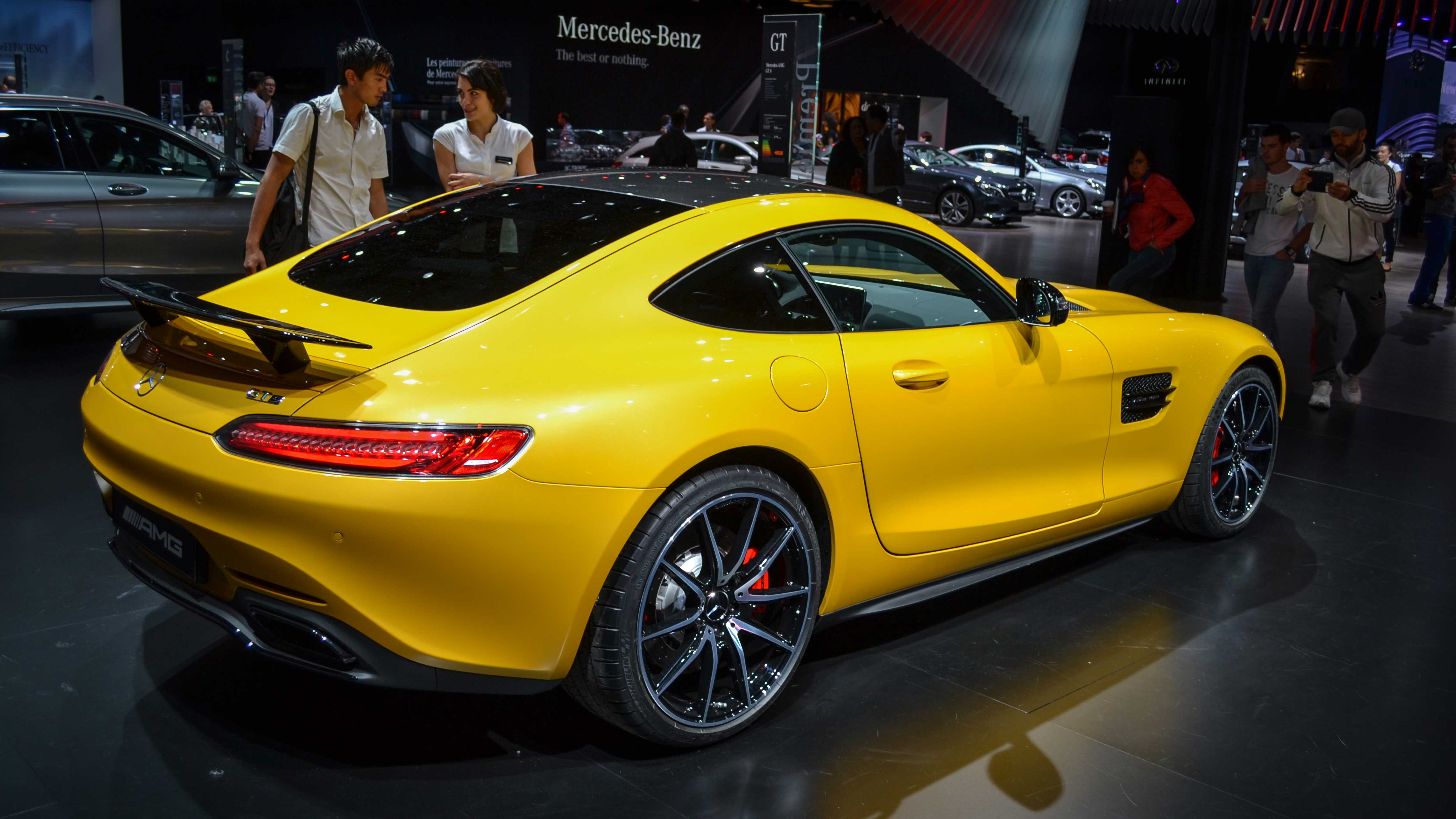 The AMG GT Coupé (C190, 2014–2023) replaced the SLS AMG with a 4.0-liter biturbo V8 and RWD. The AMG GT R and GT Black Series reached 730 hp, 0–100 km/h in 3.2 s, and over 320 km/h top speed.