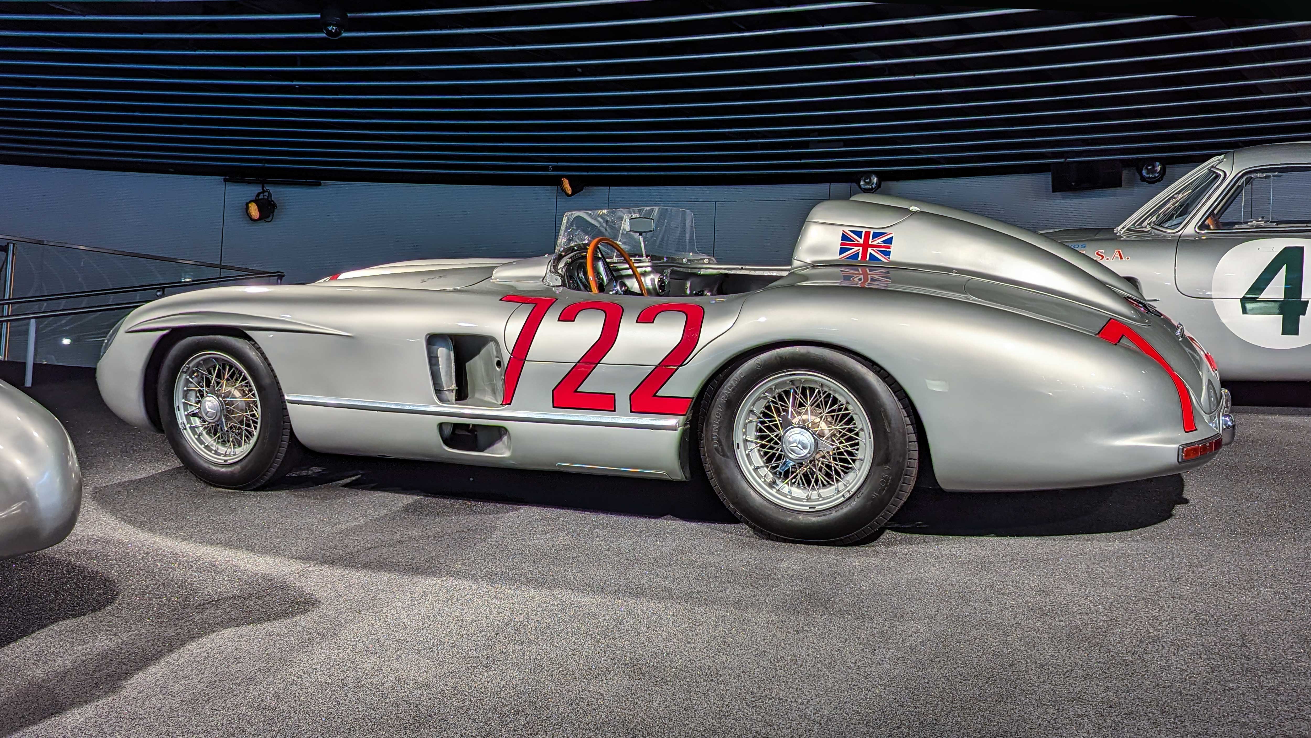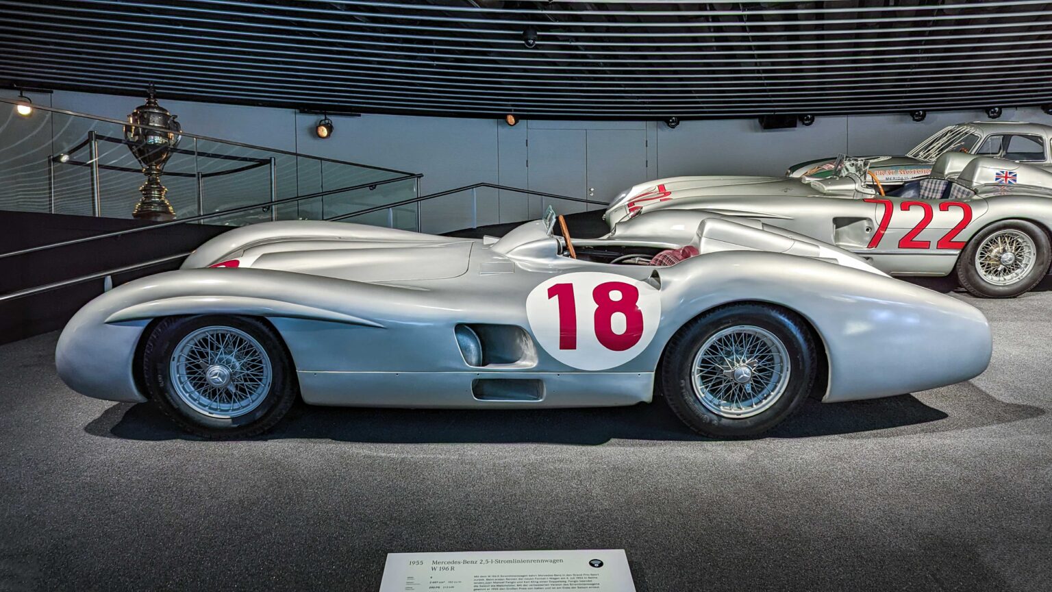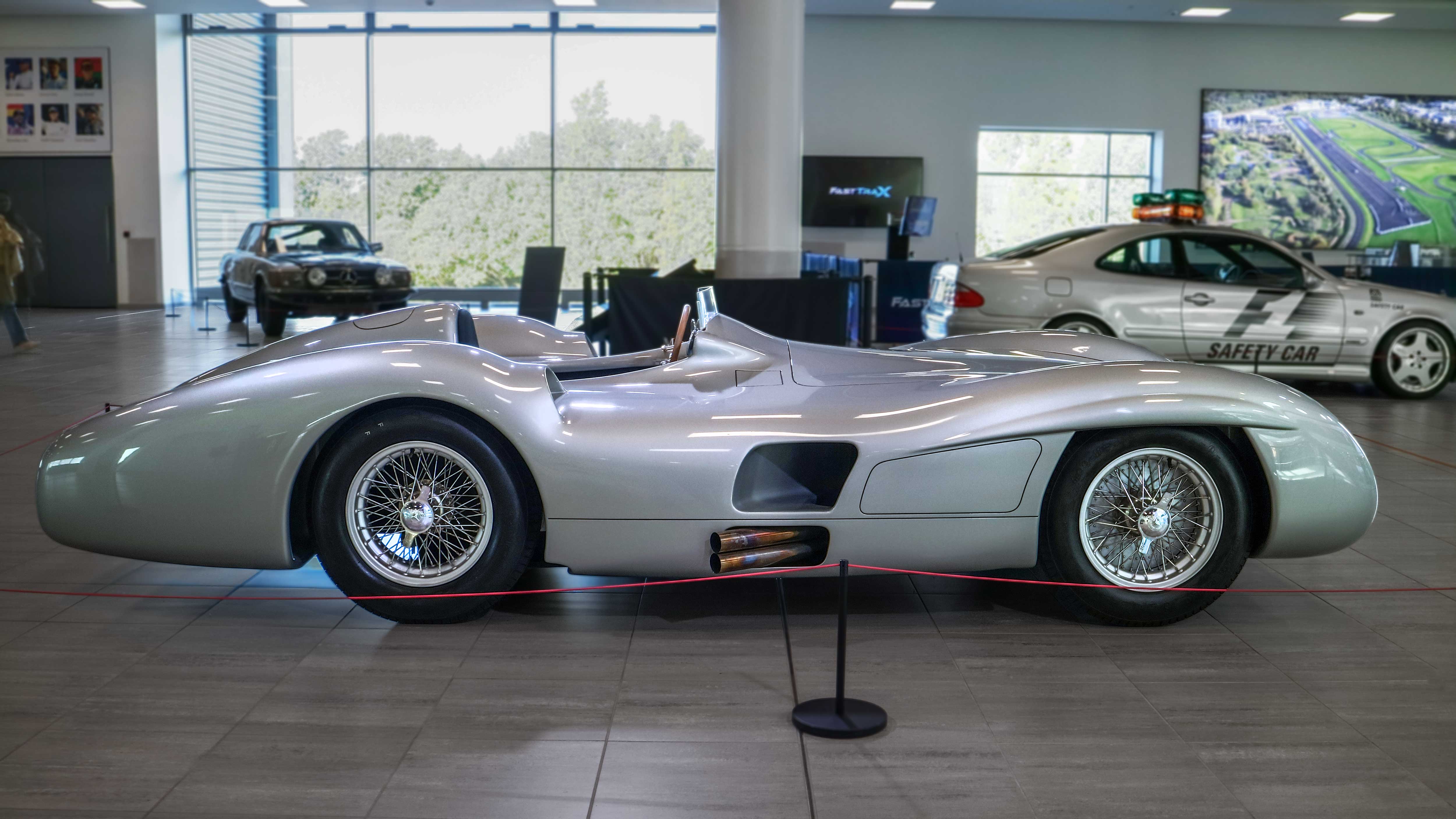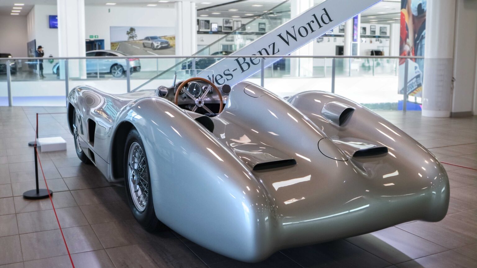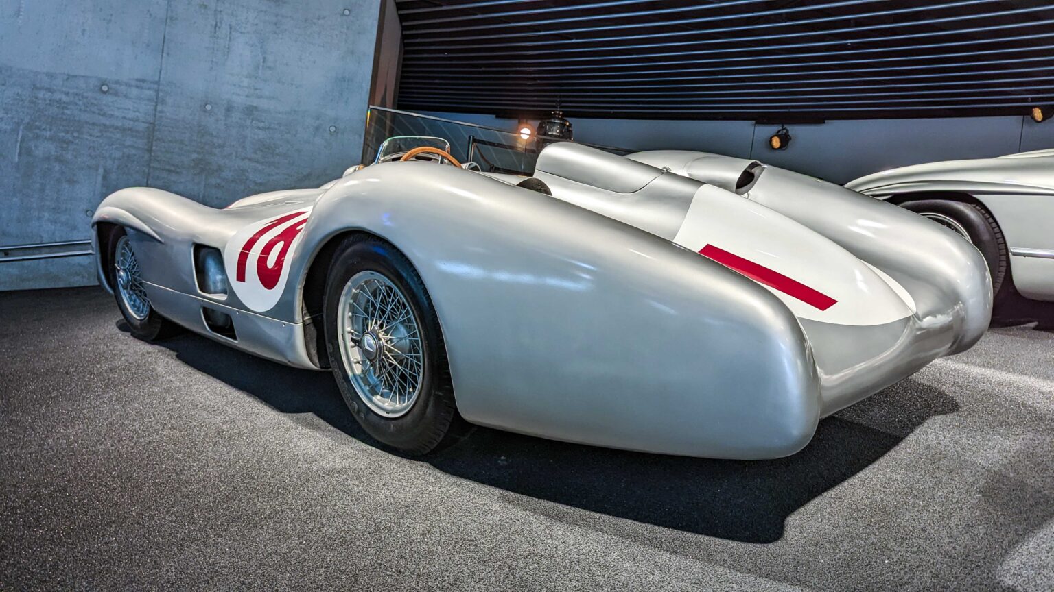 The W196 R Stromlinienwagen “Type Monza” (1954–1955) dominated Formula 1 with its streamlined bodywork and 2.5-liter straight-eight engine. Driven by legends like Juan Manuel Fangio, it won two World Championships.