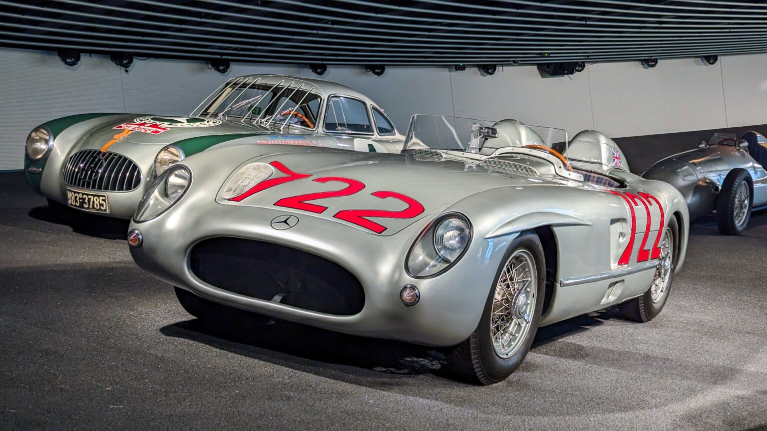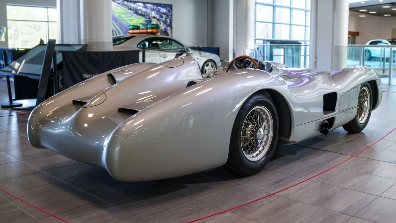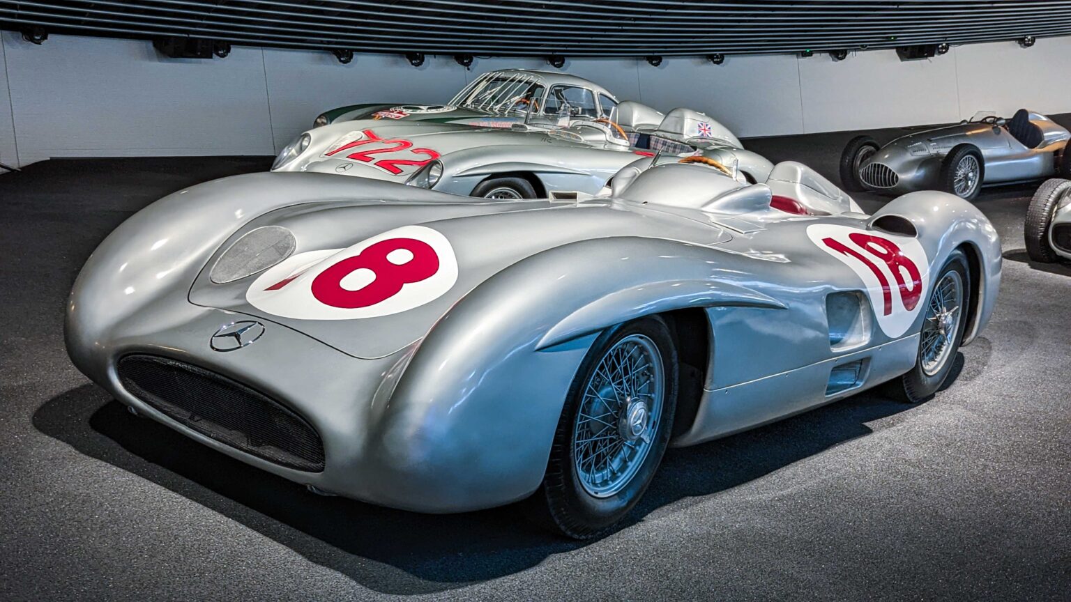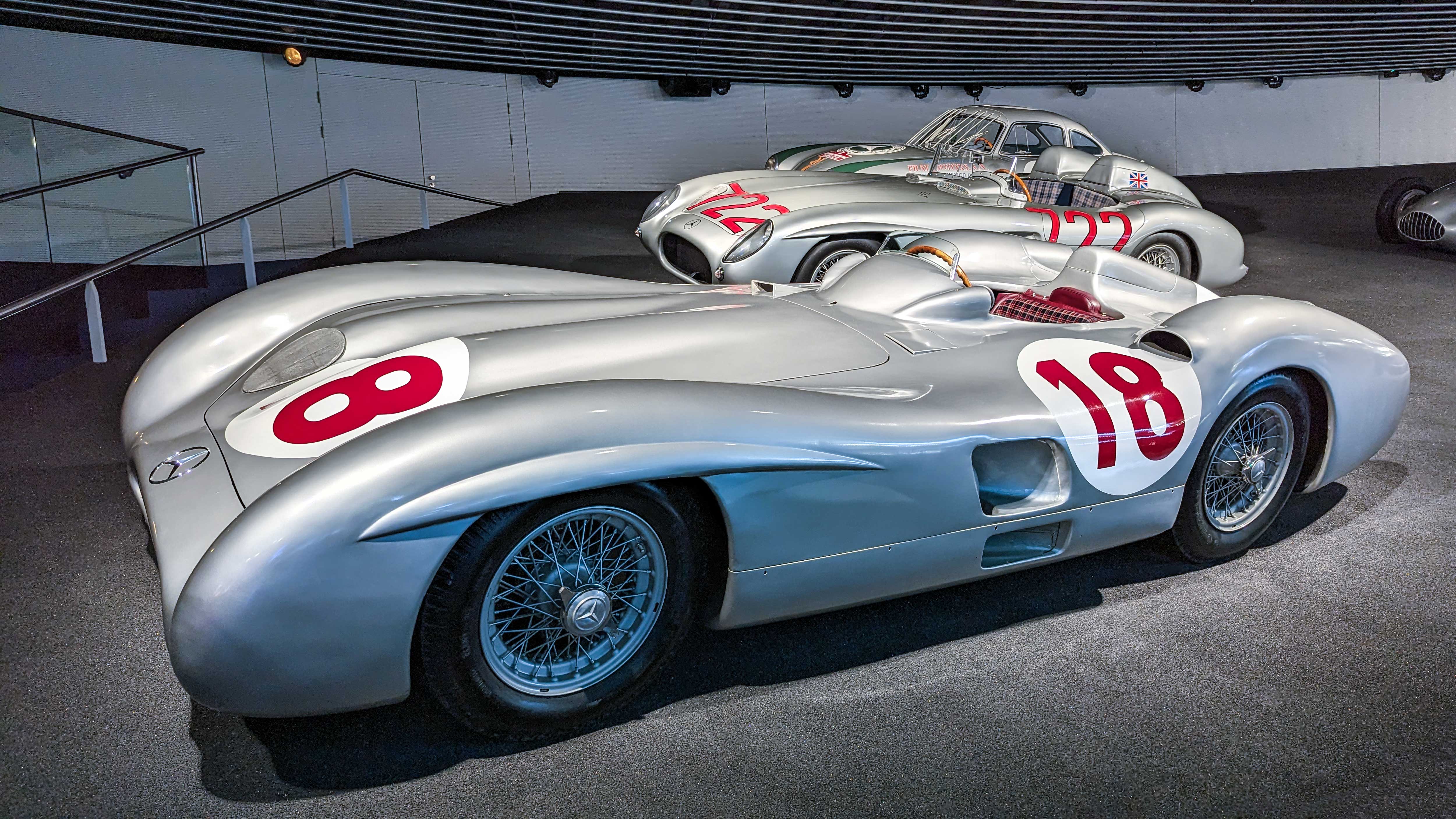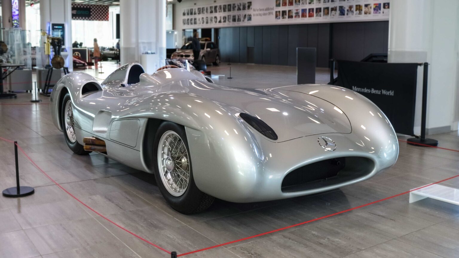 The W196 R Stromlinienwagen “Type Monza” (1954–1955) dominated Formula 1 with its streamlined bodywork and 2.5-liter straight-eight engine. Driven by legends like Juan Manuel Fangio, it won two World Championships.