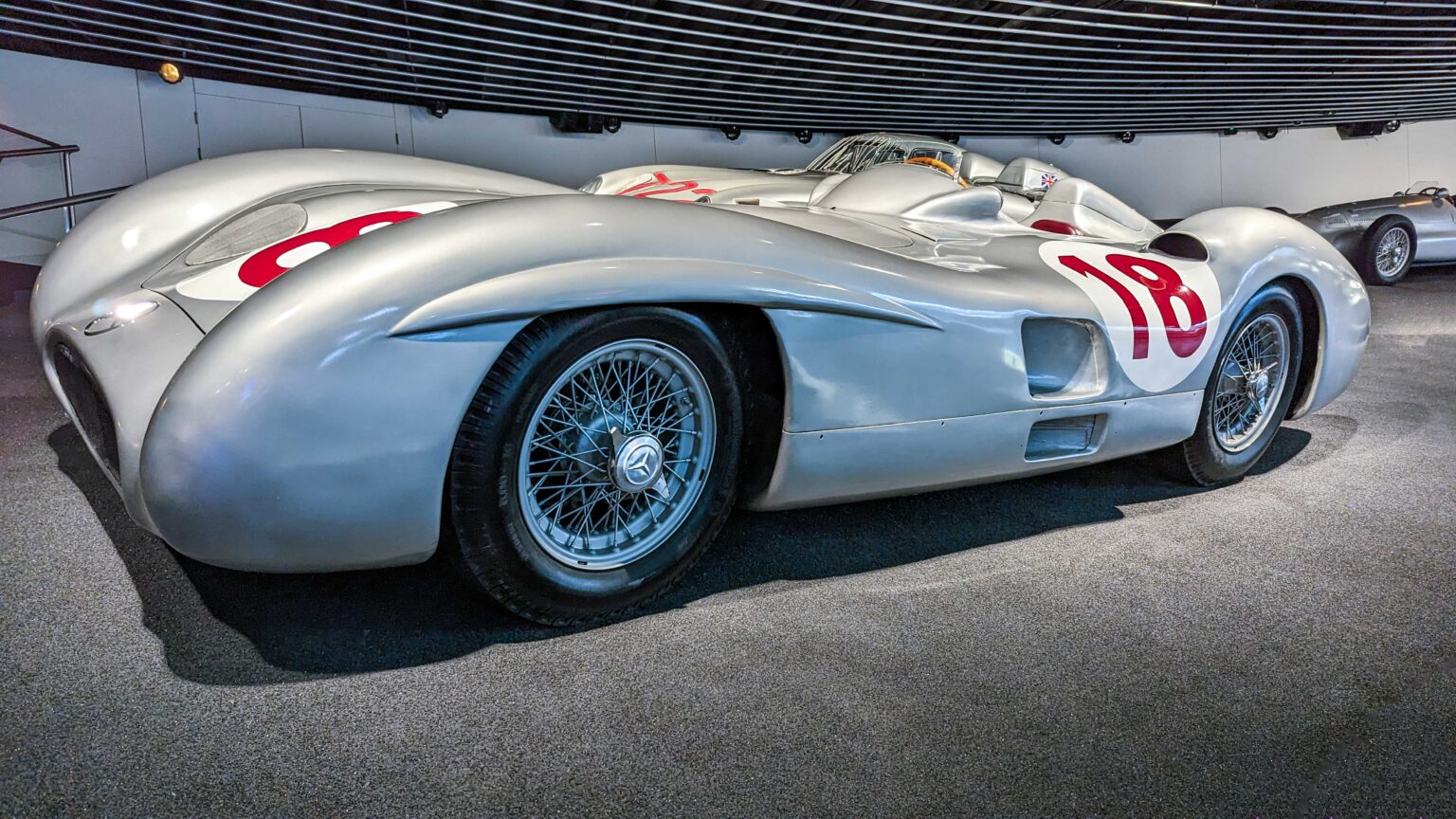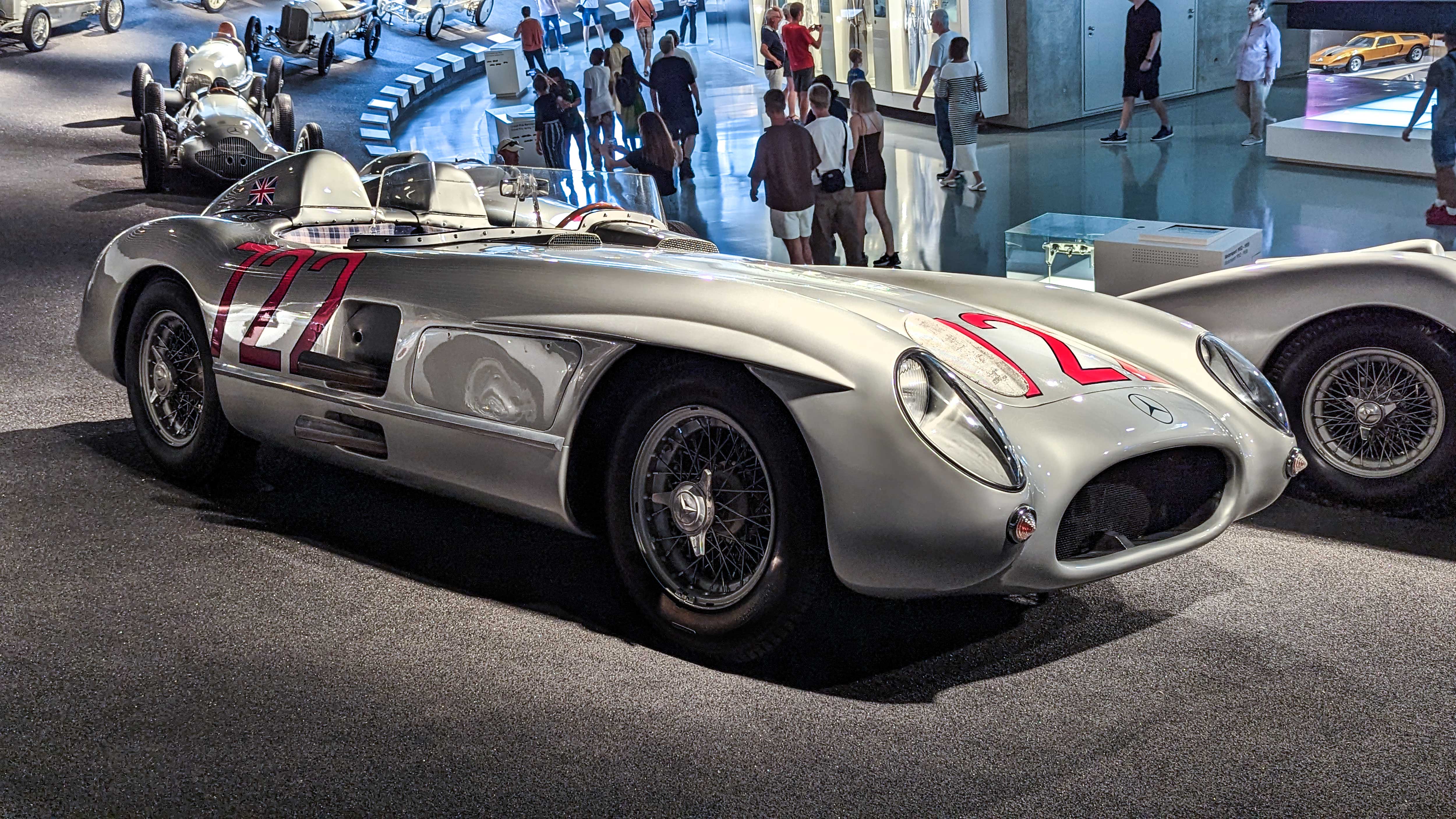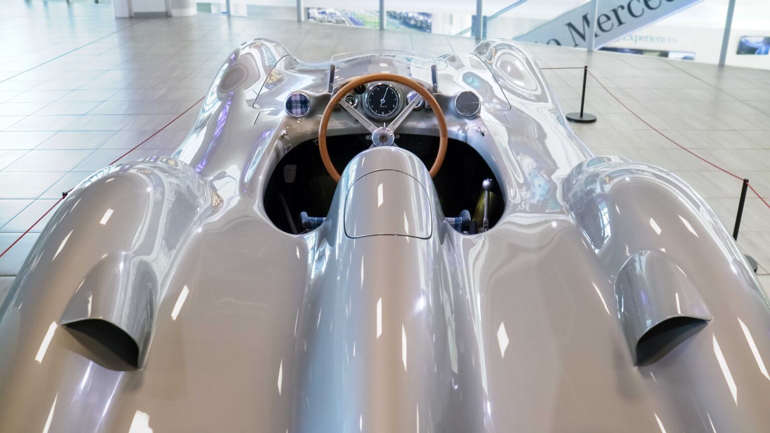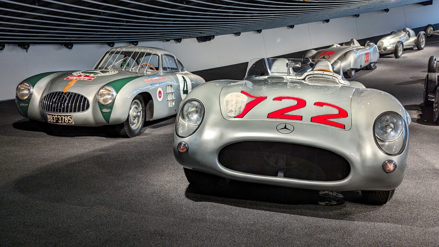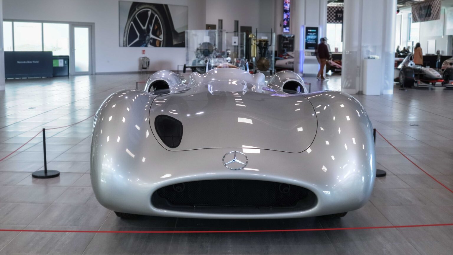 The W196 R Stromlinienwagen “Type Monza” (1954–1955) dominated Formula 1 with its streamlined bodywork and 2.5-liter straight-eight engine. Driven by legends like Juan Manuel Fangio, it won two World Championships.