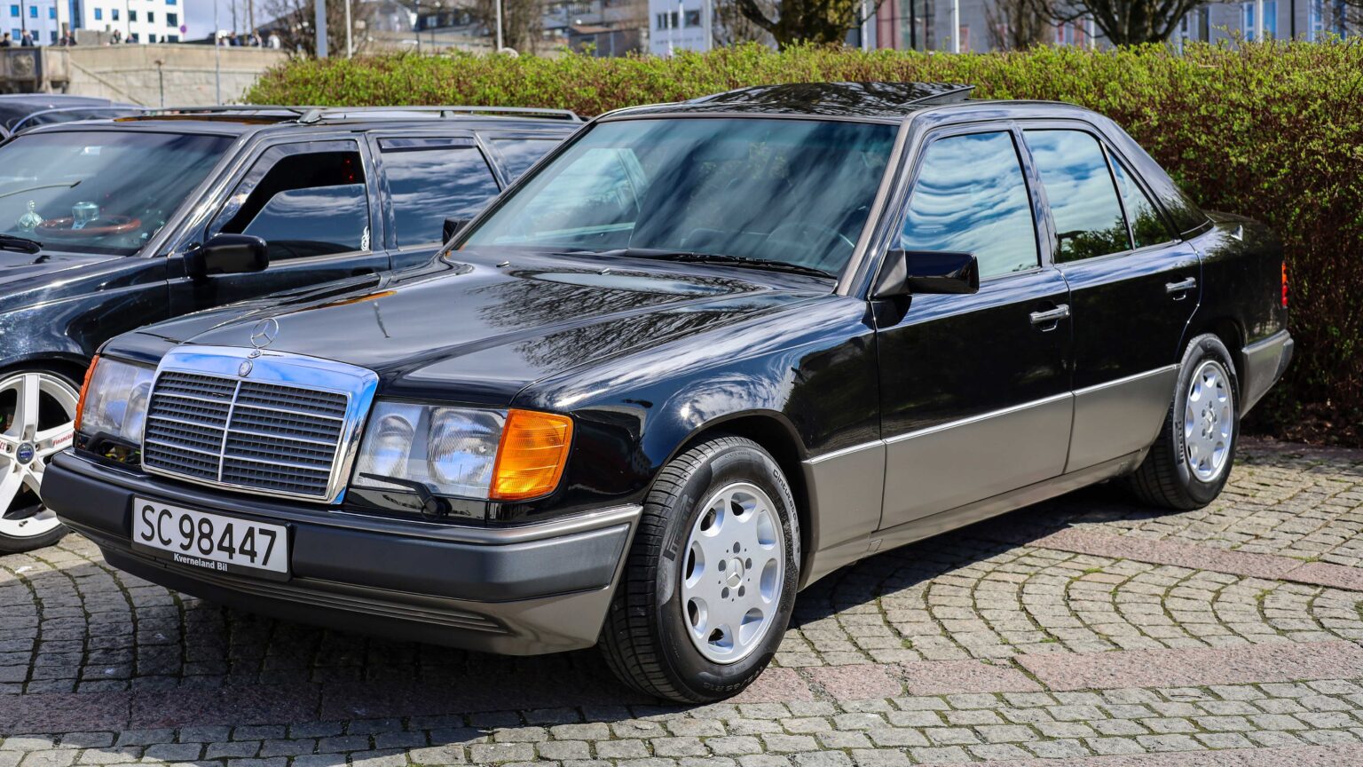 The E-Class W124 (1984–1996) became legendary for its durability and clean design. Standouts include the 6 cylinder 300D, and Porsche-built E500 with 326 hp and the rare AMG E60. True icons of 90s performance.