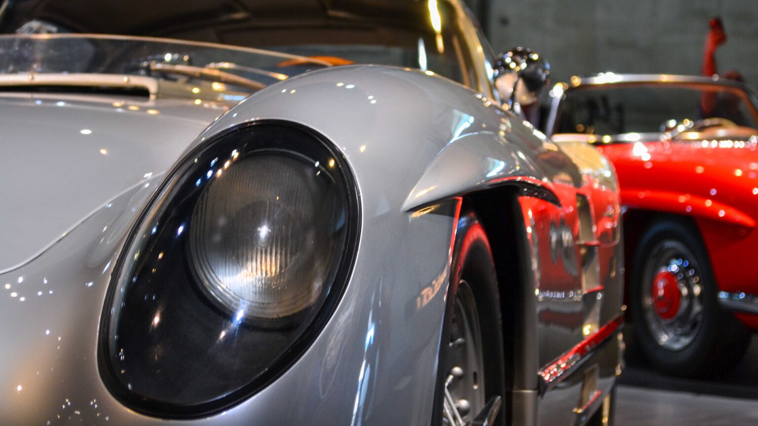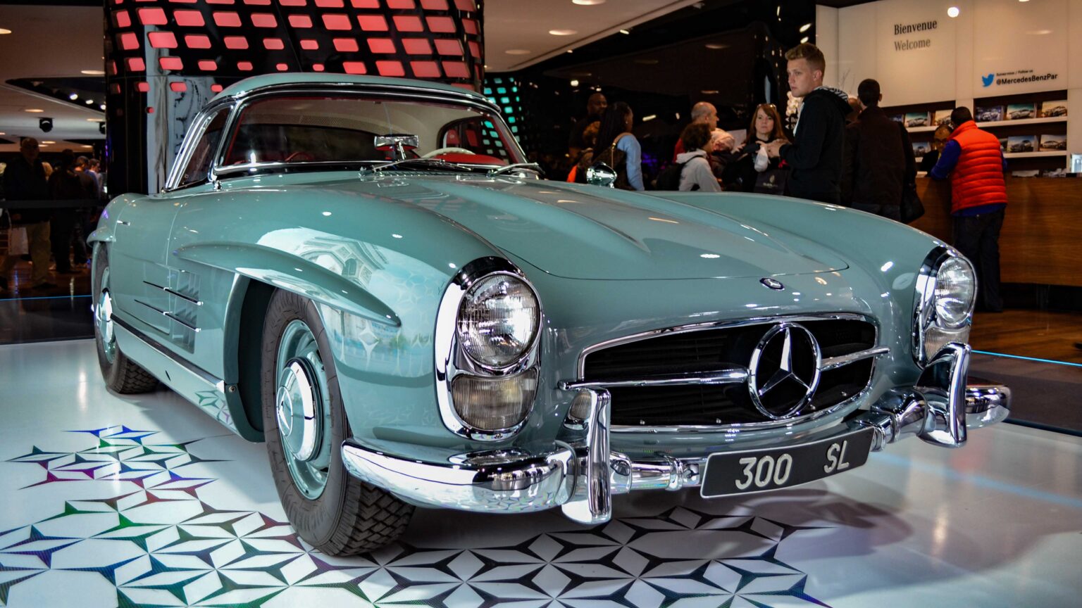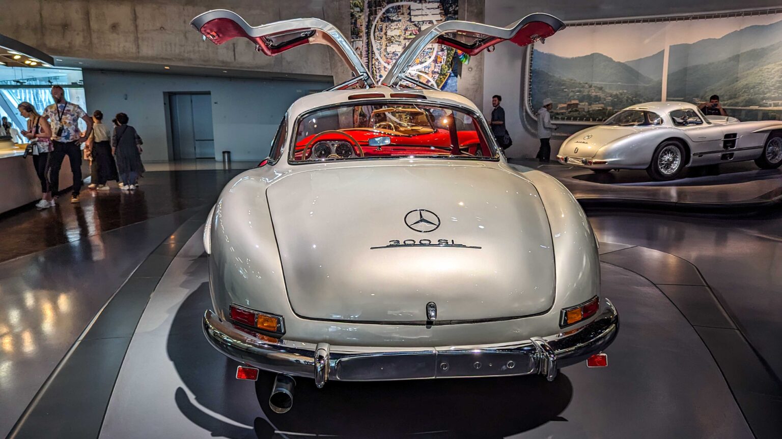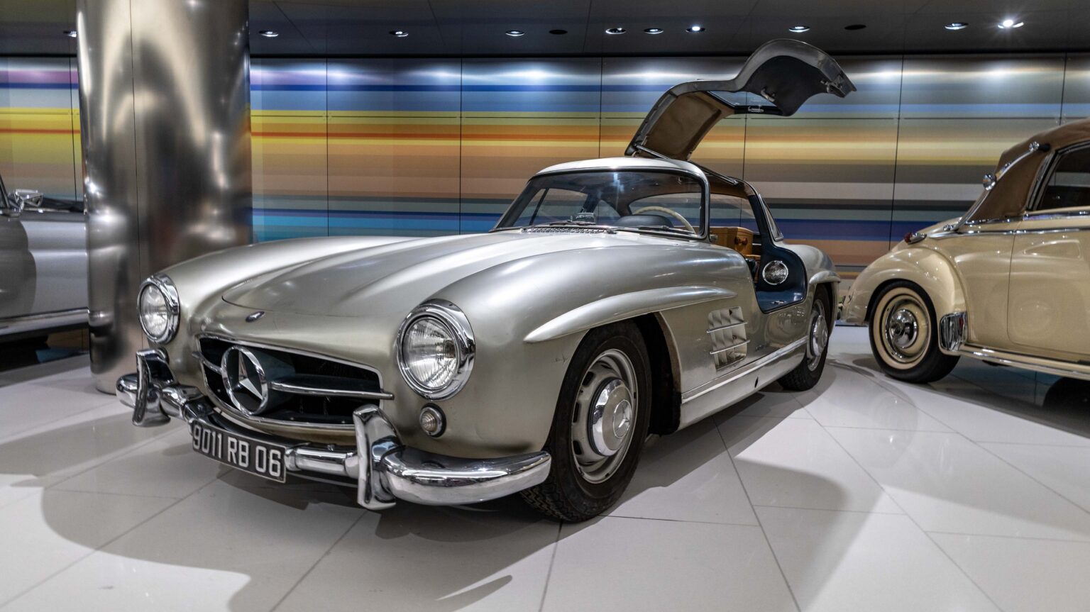 The 300 SL Gullwing (1954–1957) became an instant legend with its iconic upward-opening doors. Powered by a 3.0-liter inline-six with 215 hp, it was the fastest production car of its time and remains one of the most collectible Mercedes ever.