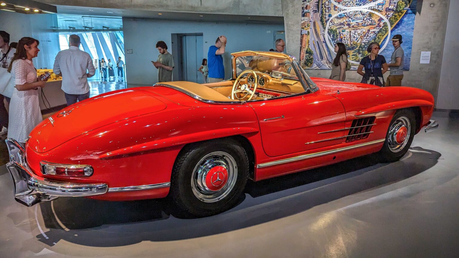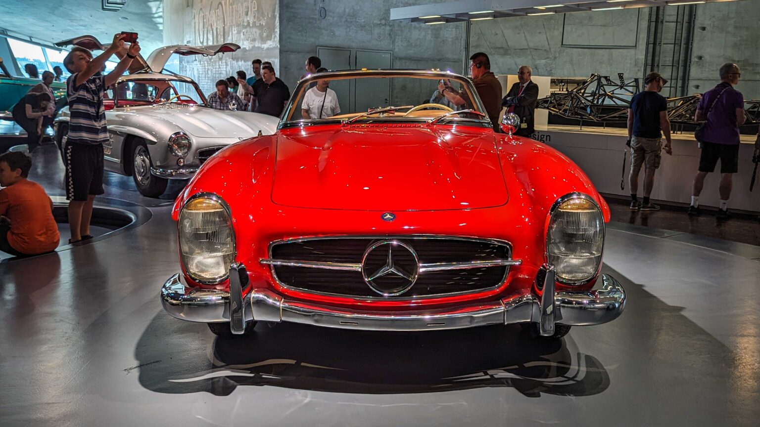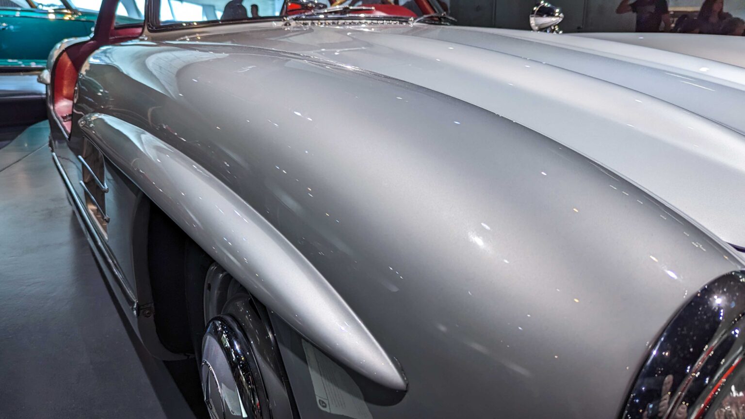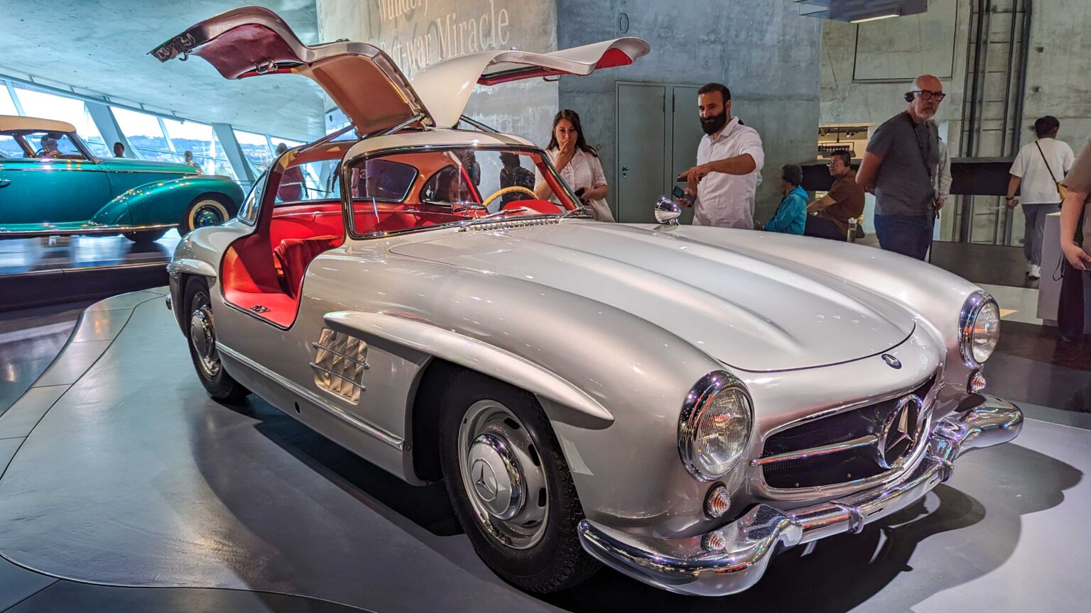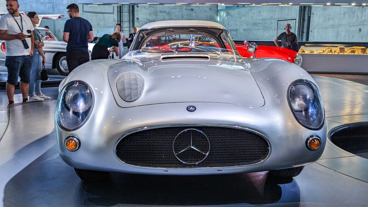 The 300 SL Gullwing (1954–1957) became an instant legend with its iconic upward-opening doors. Powered by a 3.0-liter inline-six with 215 hp, it was the fastest production car of its time and remains one of the most collectible Mercedes ever.