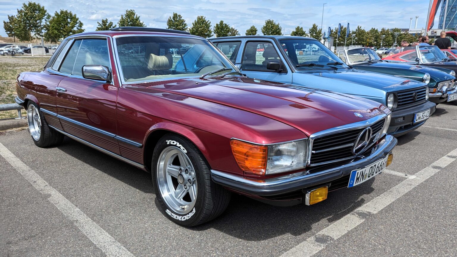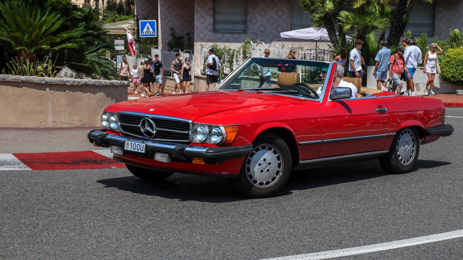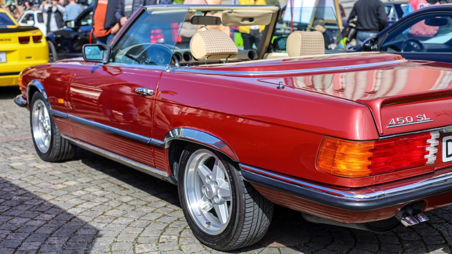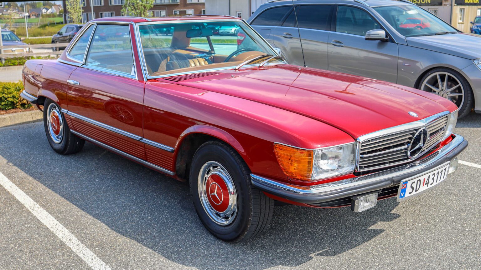 The R107 SL and SLC (1971–1989) became long-running icons of style and durability. Offered with six- and eight-cylinder engines up to the 240 hp 560 SL, they remain among the most beloved Mercedes classics.
