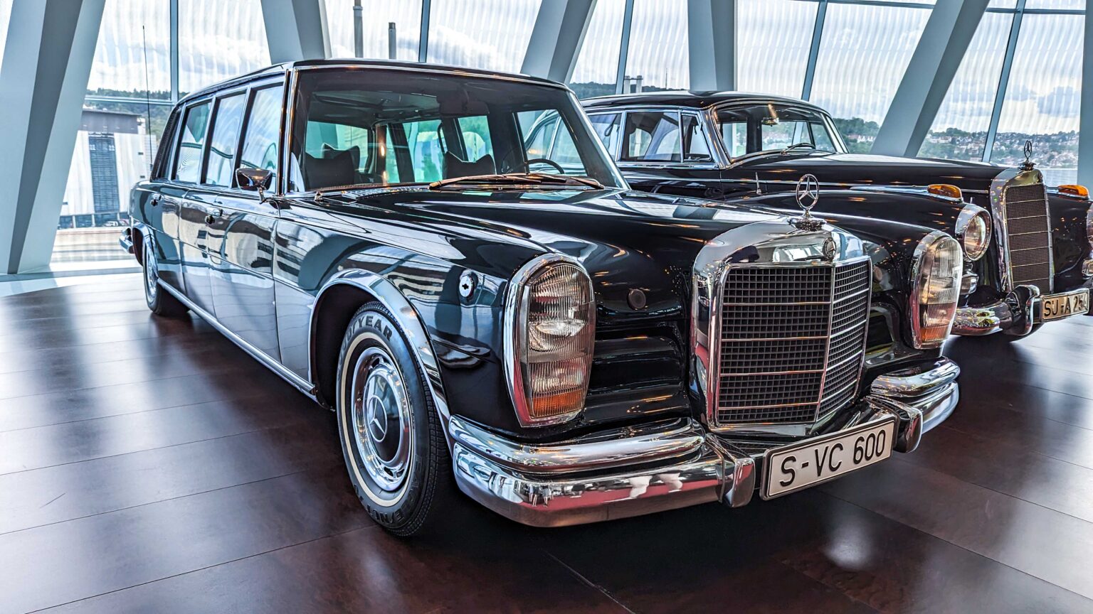 The W109 300 SEL 6.3 (1968–1972) shocked the luxury world by pairing limousine comfort with a 6.3-liter V8 and 250 hp. As the fastest sedan of its time, it became the blueprint for future AMG super-saloons