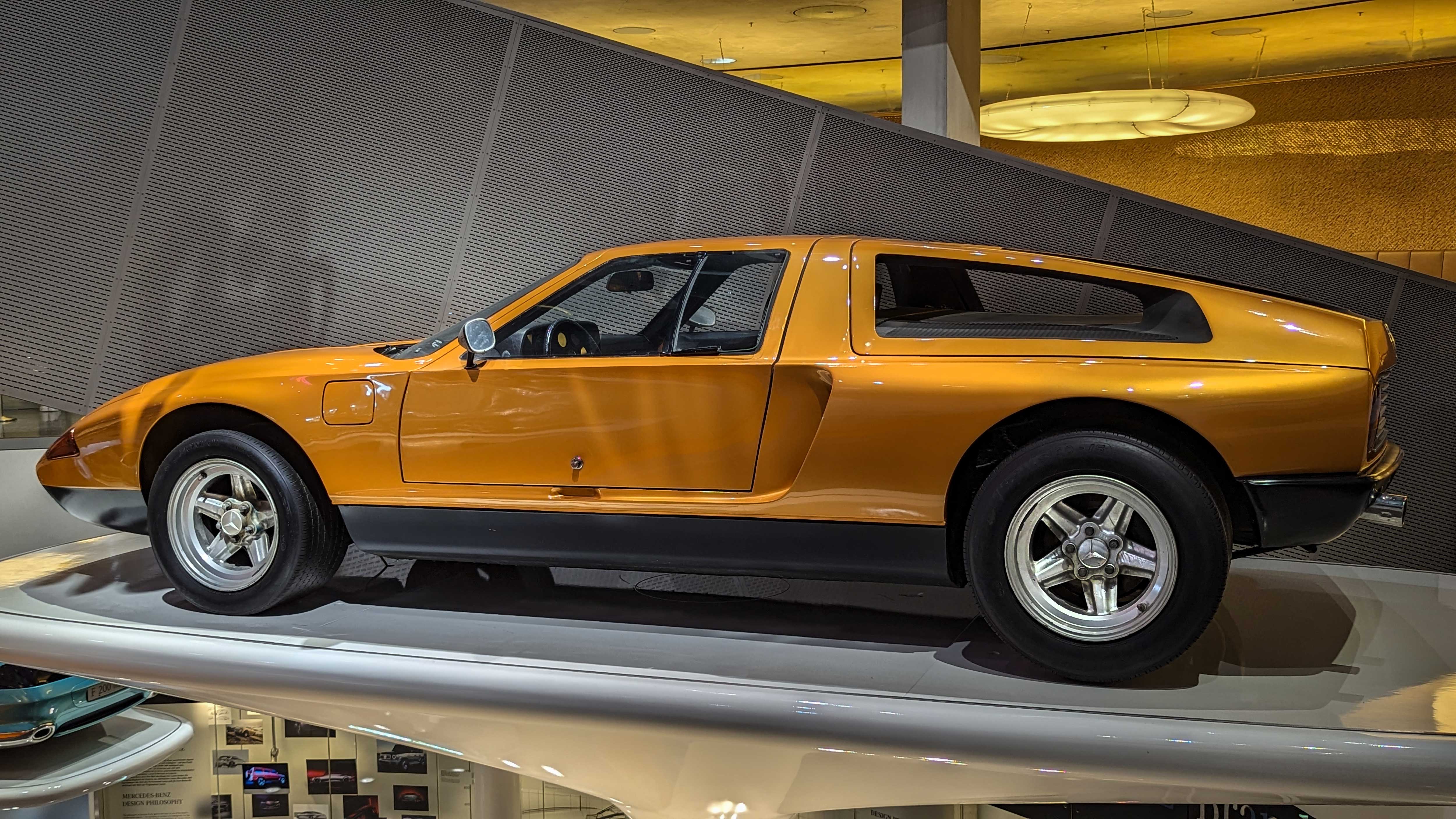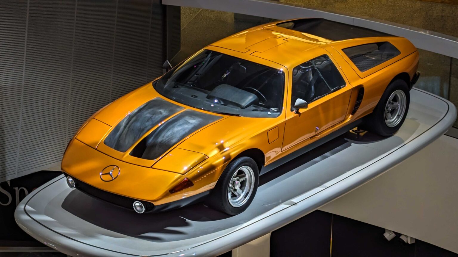 The C 111 Concept (1969–1979) was an experimental sports car that tested Wankel and turbo-diesel engines. C 111 featured futuristic gullwing design and record-breaking performance.