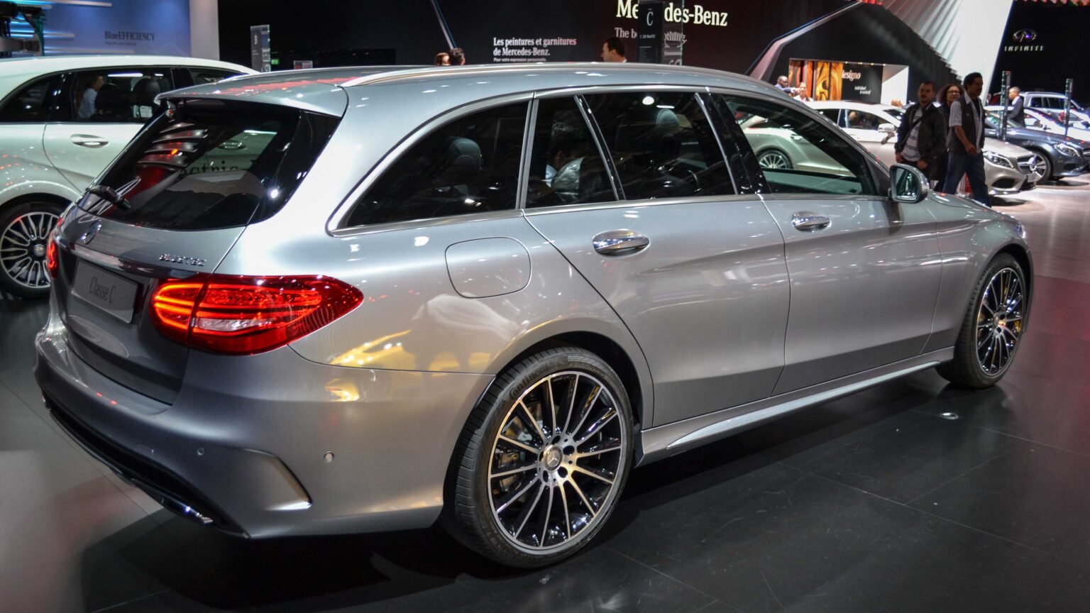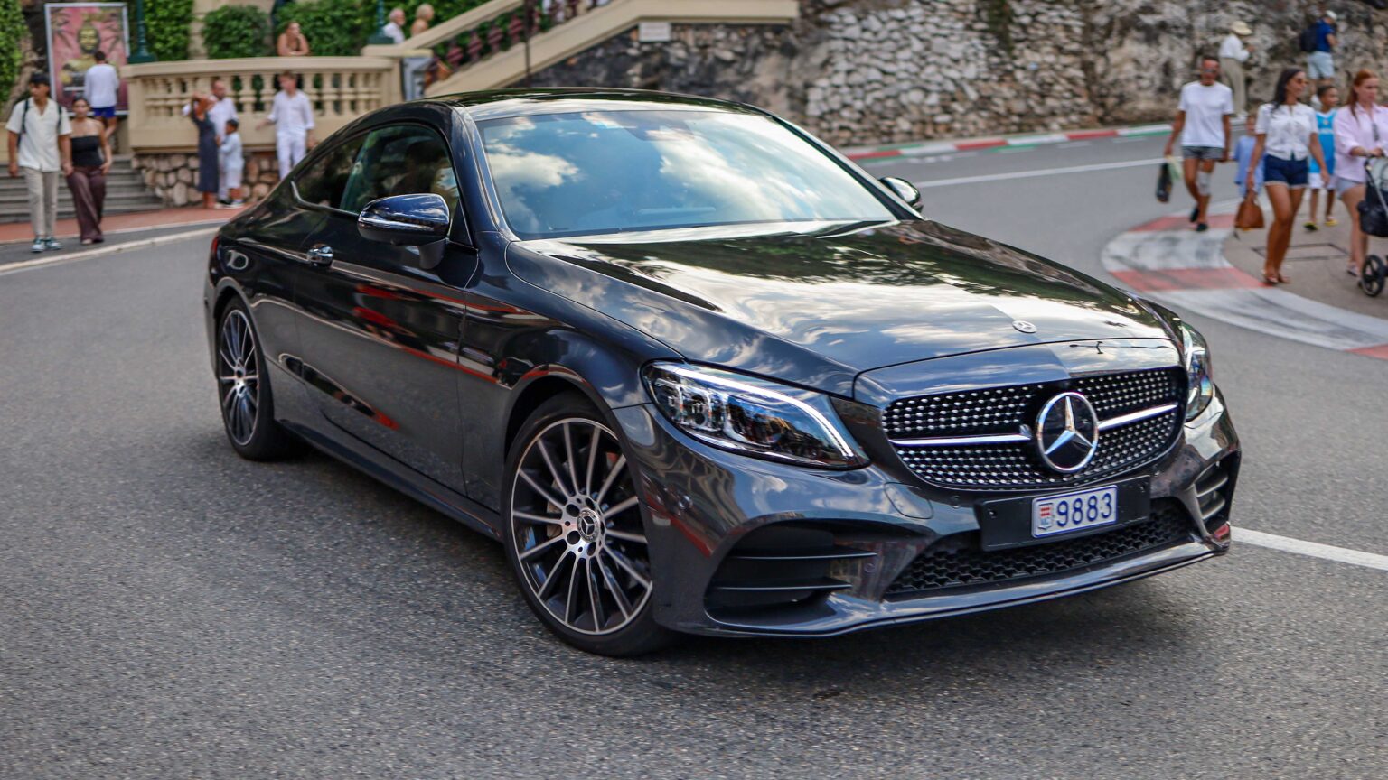 The C-Class W205 (2014–2021) combined sleek design with modern tech. The highlight was the AMG C63 with a 4.0-liter twin-turbo V8 pushing up to 510 hp, making it a true performance car.