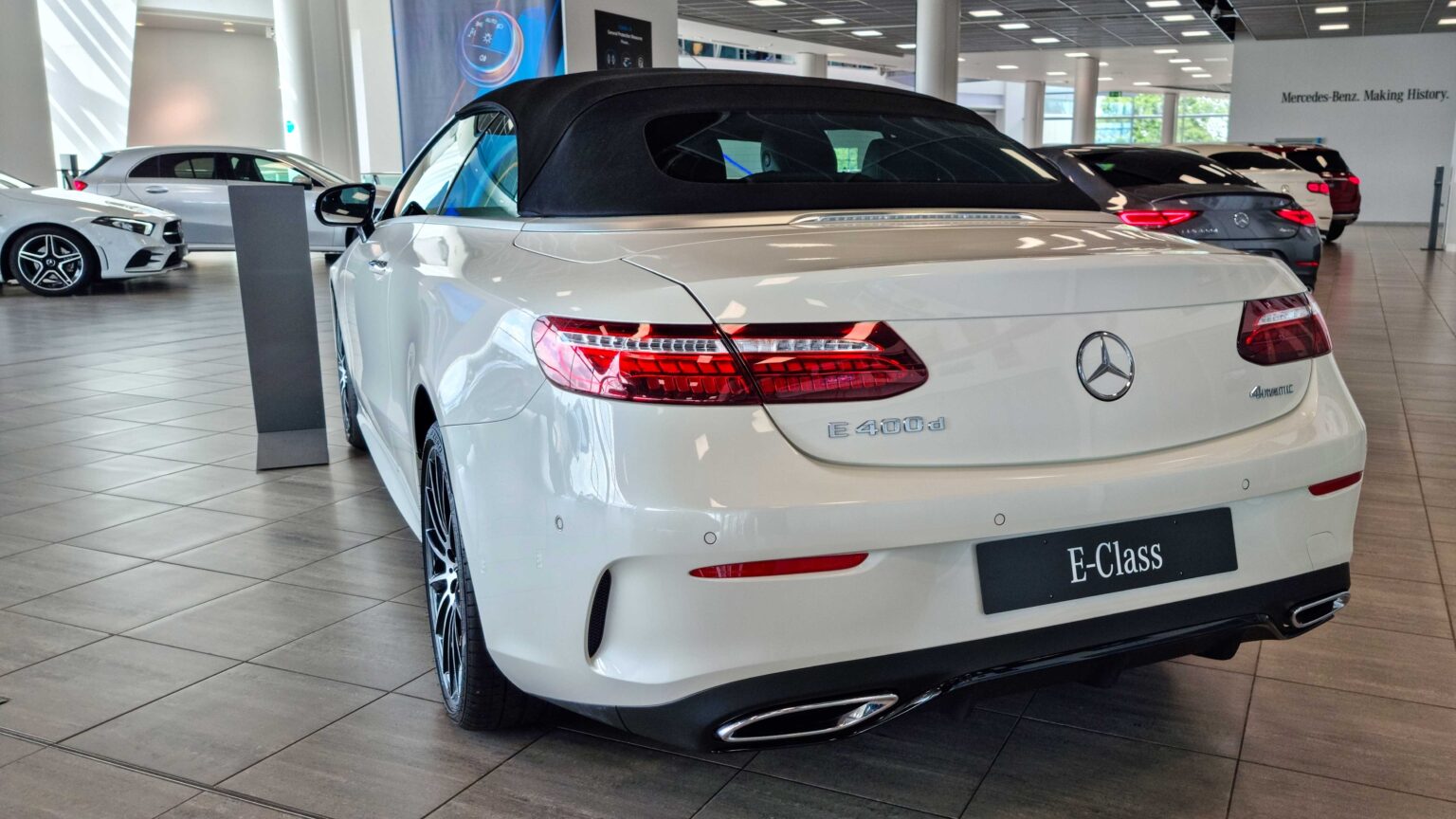 The E-Class W214 (2023–today) brings digital luxury and hybrid power. With up to 381 hp in the AMG E53 and a high-tech interior with Superscreen, it sets new standards for the business sedan.
