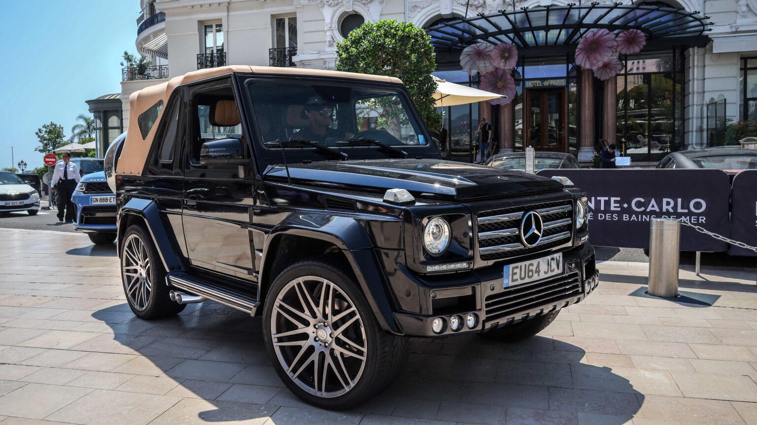 The G-Class W463 (1990–2018) turned the military 4×4 into a luxury icon. Highlights include the AMG G55 Kompressor with 500+ hp, the G63 and G65 V12, plus Brabus monsters pushing beyond 800 hp.