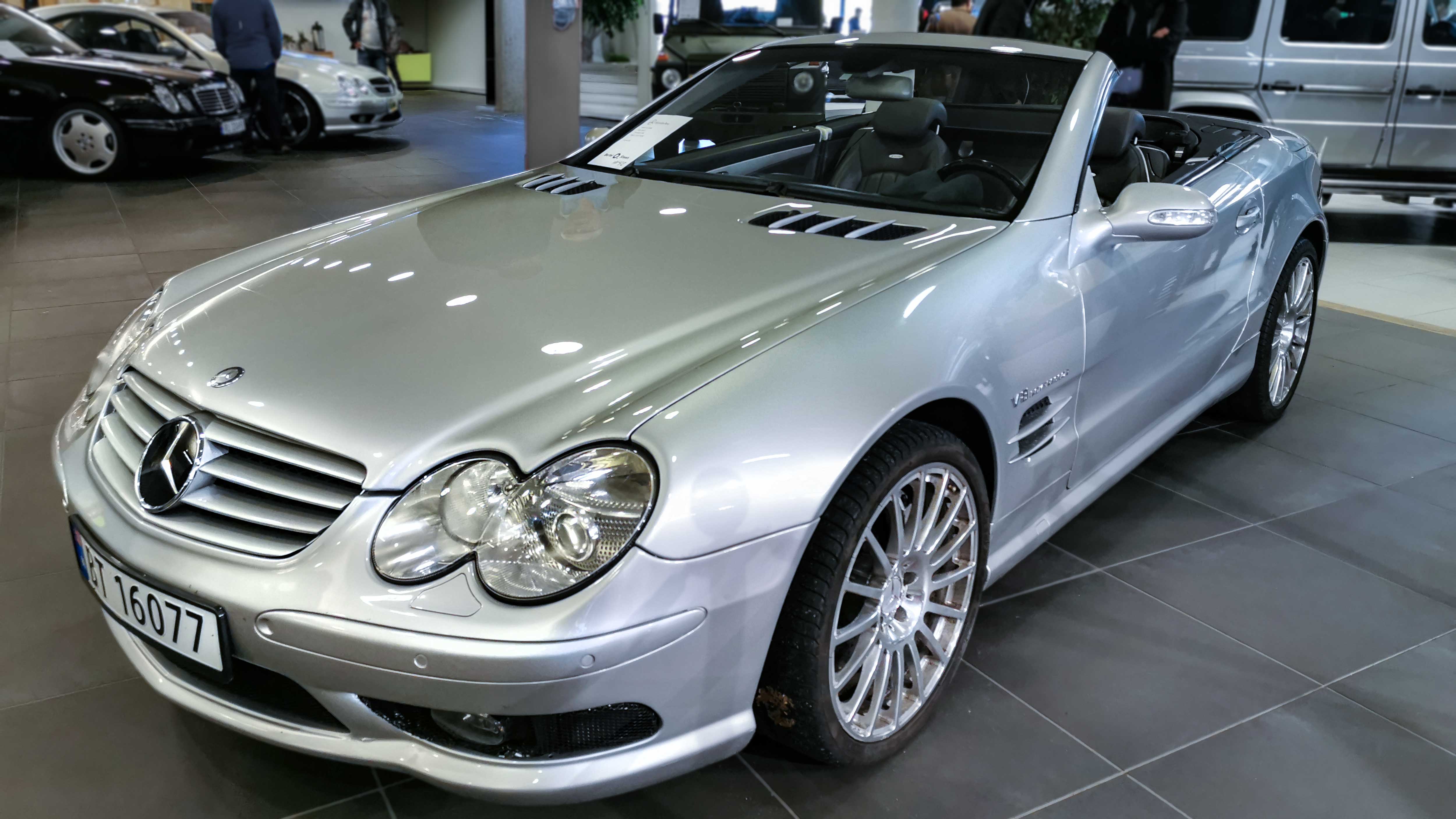 The SL R230 (2001–2011) introduced the folding hardtop and bold design. Known for the SL55 AMG with 500+ hp and the V12-powered SL65 AMG, it blended grand touring comfort with supercar pace.