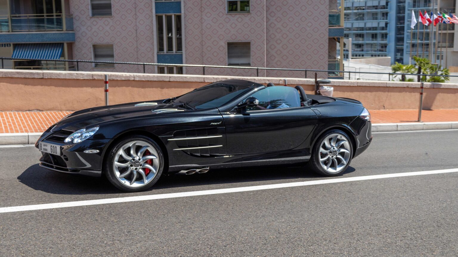 The SLR Stirling Moss (2009) was a roofless speedster limited to 75 cars. With 650 hp from its V8 and design inspired by the 300 SLR, it became one of the most extreme and collectible Mercedes ever.