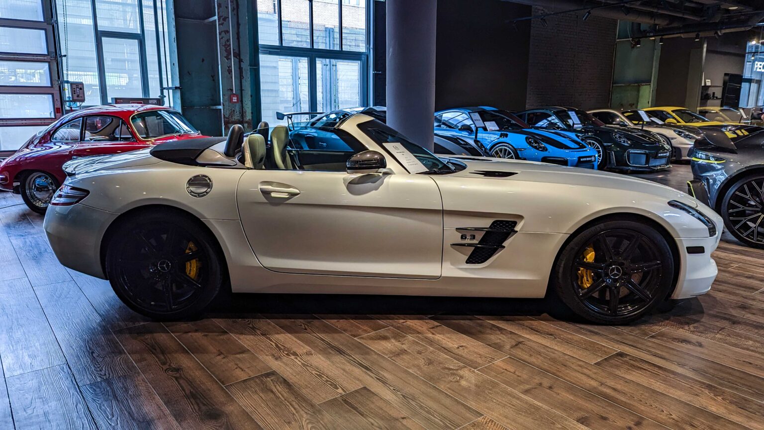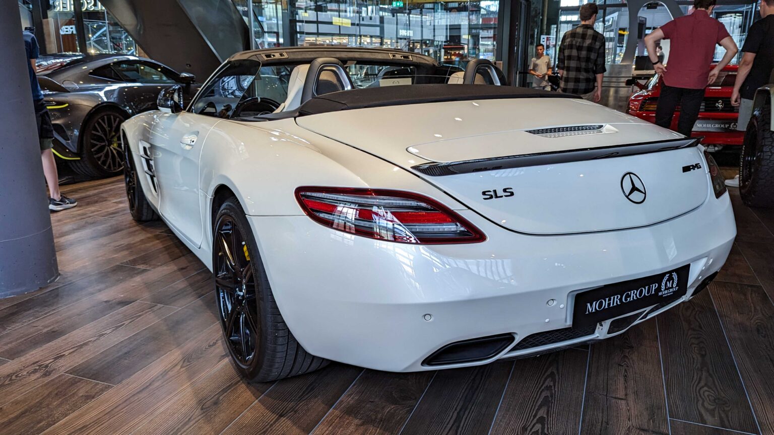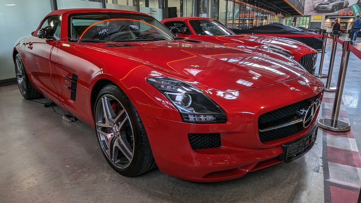 The SLS AMG (2010–2015) revived the gullwing legend with AMG’s first standalone car. Powered by a 6.2-liter V8 with up to 631 hp in the Black Series, it became an instant icon for performance and design.